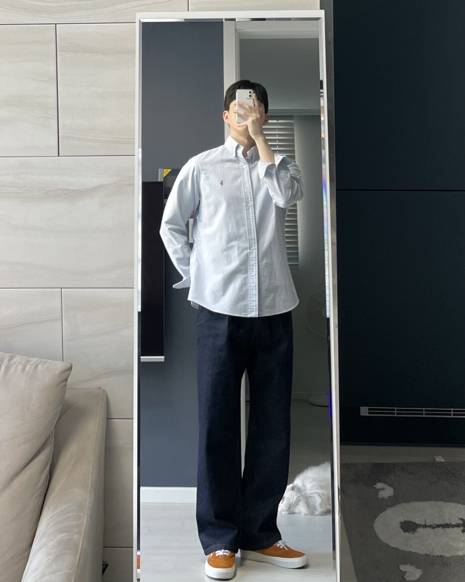 그러다 작년부터 테이퍼드/슬림 핏 크롭 팬츠 보다 와이드 롱랭스 핏 바지를 즐겨 입으면서 포플린이나 코듀로이 셔츠같이 넣입 했을 때 예쁜 셔츠들은 거의 입지를 않고 있고 오늘 소개하는 옥스포드 셔츠나 린넨 셔츠같이 빼입 했을 때 예쁜 셔츠들만 입고 있어요.